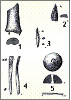 serie de piezas de industria ósea como: un punzón (Fig.3), una esquirla